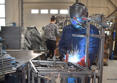 Een lasser druk in de weer met het maken van een stoelframe.