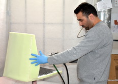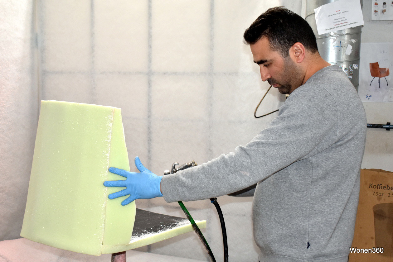 Hier is goed te zien dat de vervaardiging van de stoelen op ambachtelijke wijze gebeurt.