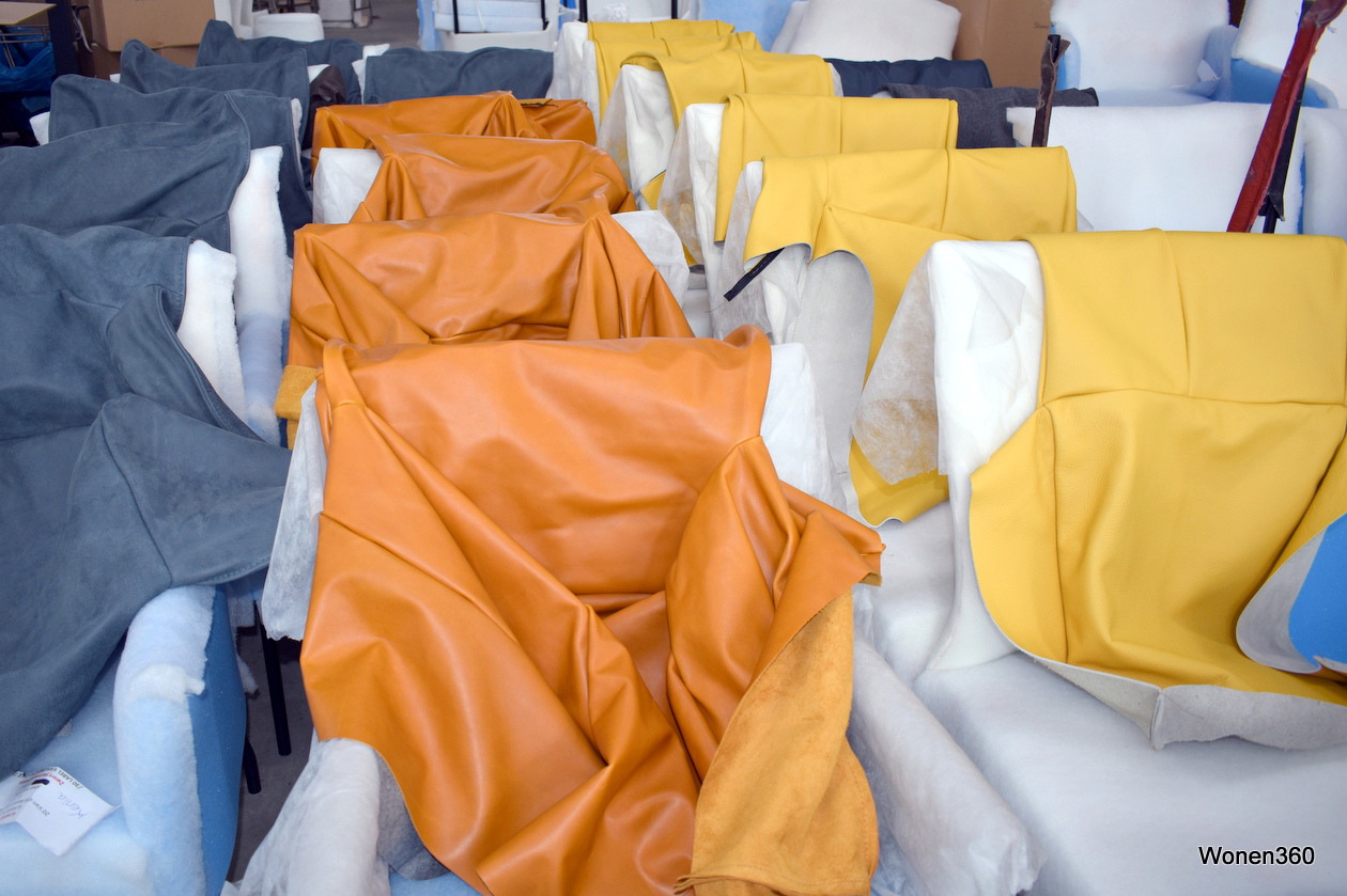Stoelleer in verschillende kleuren ligt klaar om verwerkt te worden.