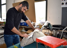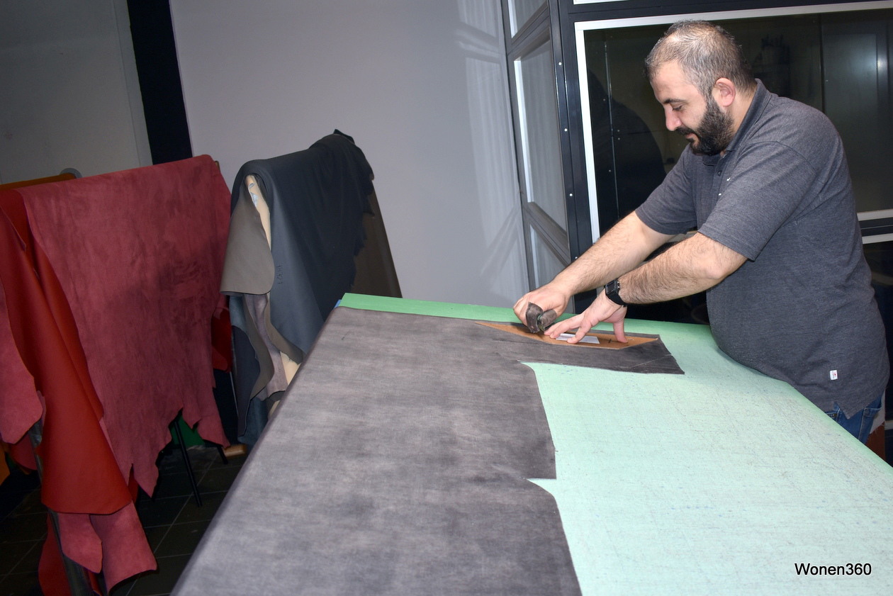 Het leer wordt met de hand op maat gesneden.