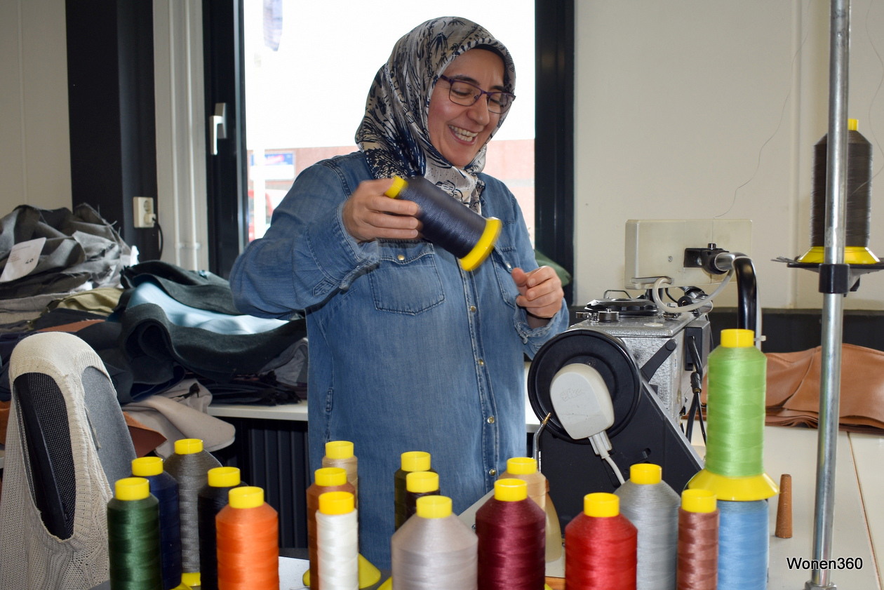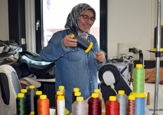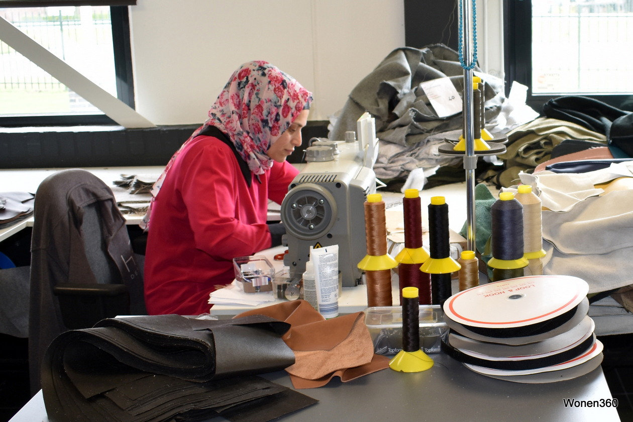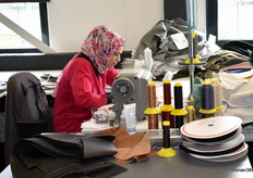 Een kijkje in het naaiatelier, waar de machines op volle toeren draaien.