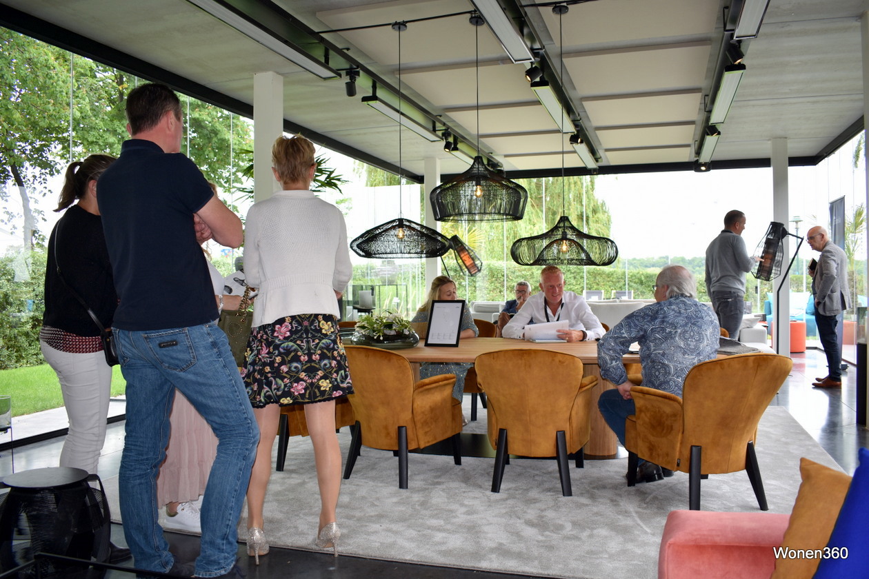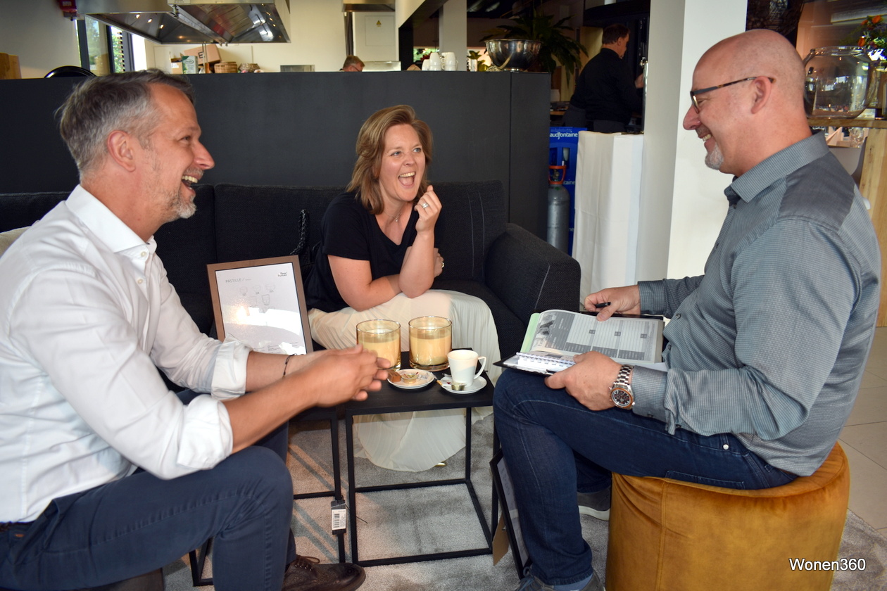 Bezoeker Michel Houweling (links) van Houweling Interieur uit Amsterdam in gesprek met Ruud Wiffrie van Passe Partout.