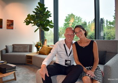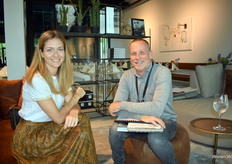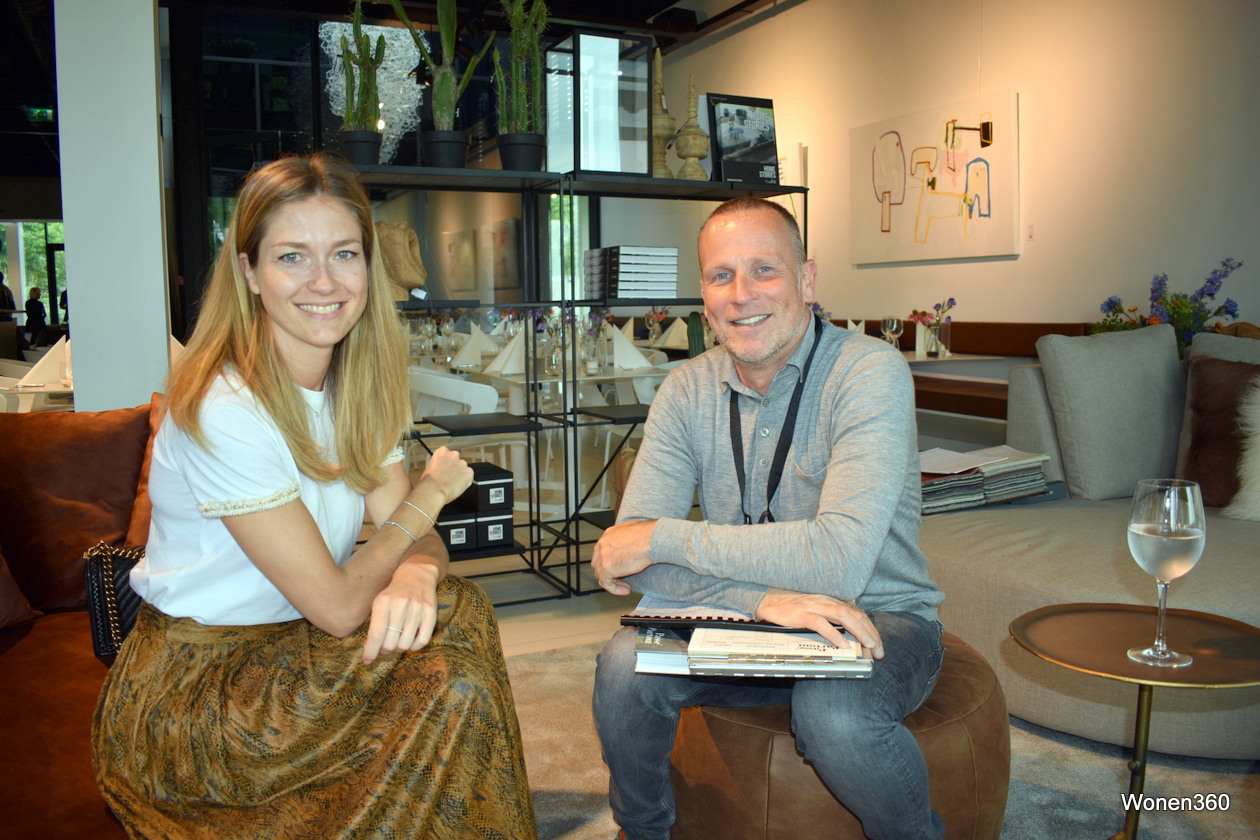 Agent Didier Buylaert (rechts) in gesprek met Nathalie Beeckmans van Beeckmans Design uit Antwerpen.