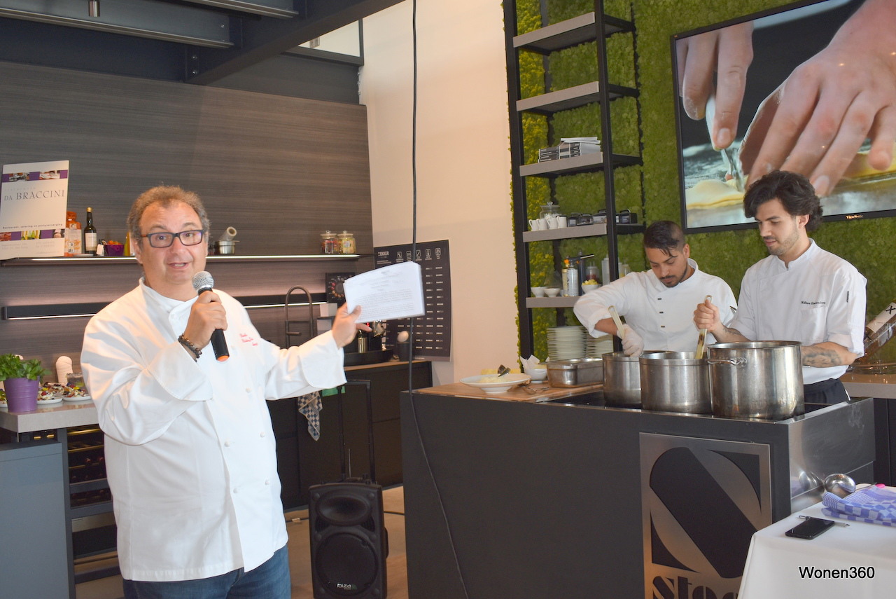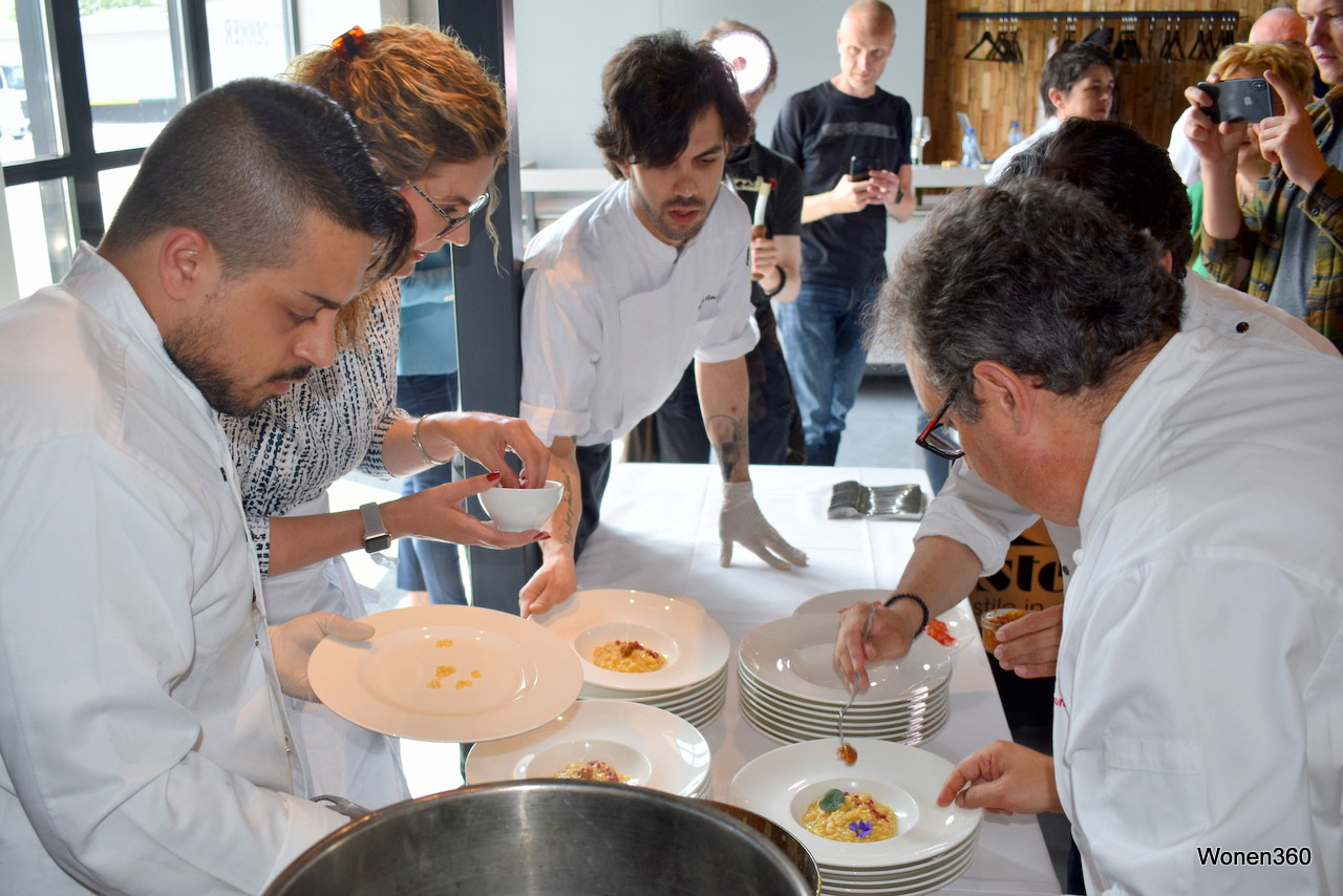 Pablo Gramaglia bereidde twee gerechten (risotto in giallo en vesuvio fuoco e fiamme) die hij de genodigden toelichtte.