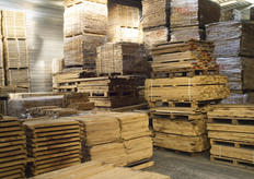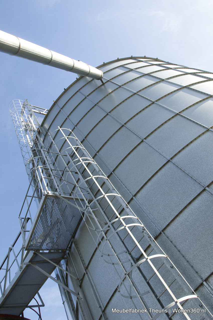 Geen houtsnippertje gaat verloren, alle houtafval wordt hergebruikt. Deze silo dient al brandstoftoevoer voor de verwarming van de fabriek.