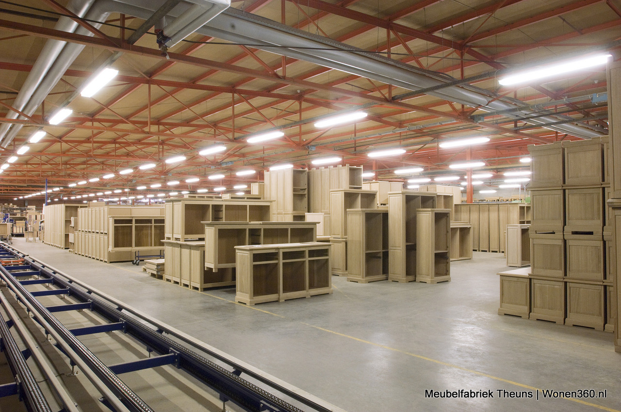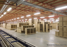 Een blik in de immense productiehal. Alles bij elkaar beschikt de meubelfabriek over een vloeroppervlakte van 22.000 m2.