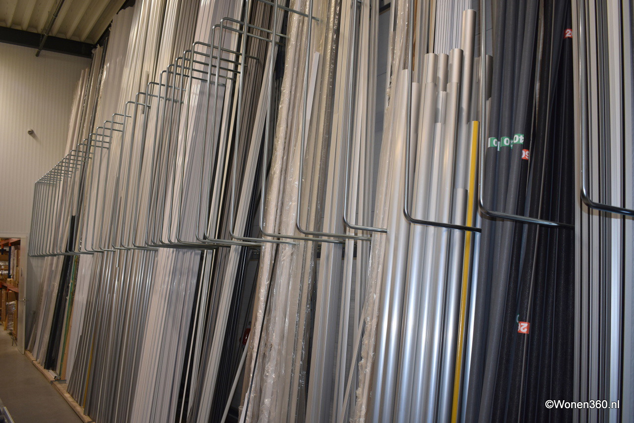 In het magazijn staan profielen gereed om op maat gezaagd te worden.