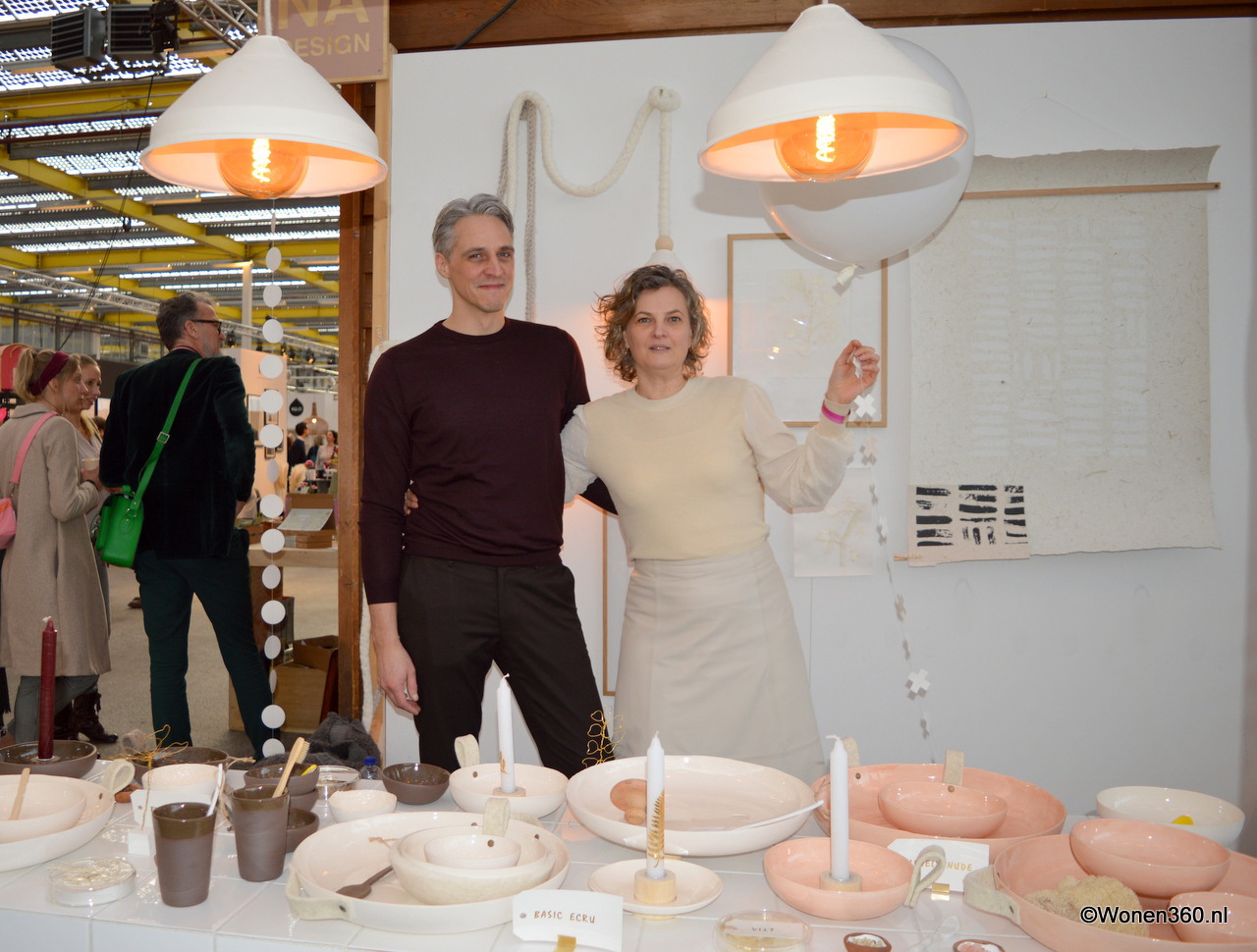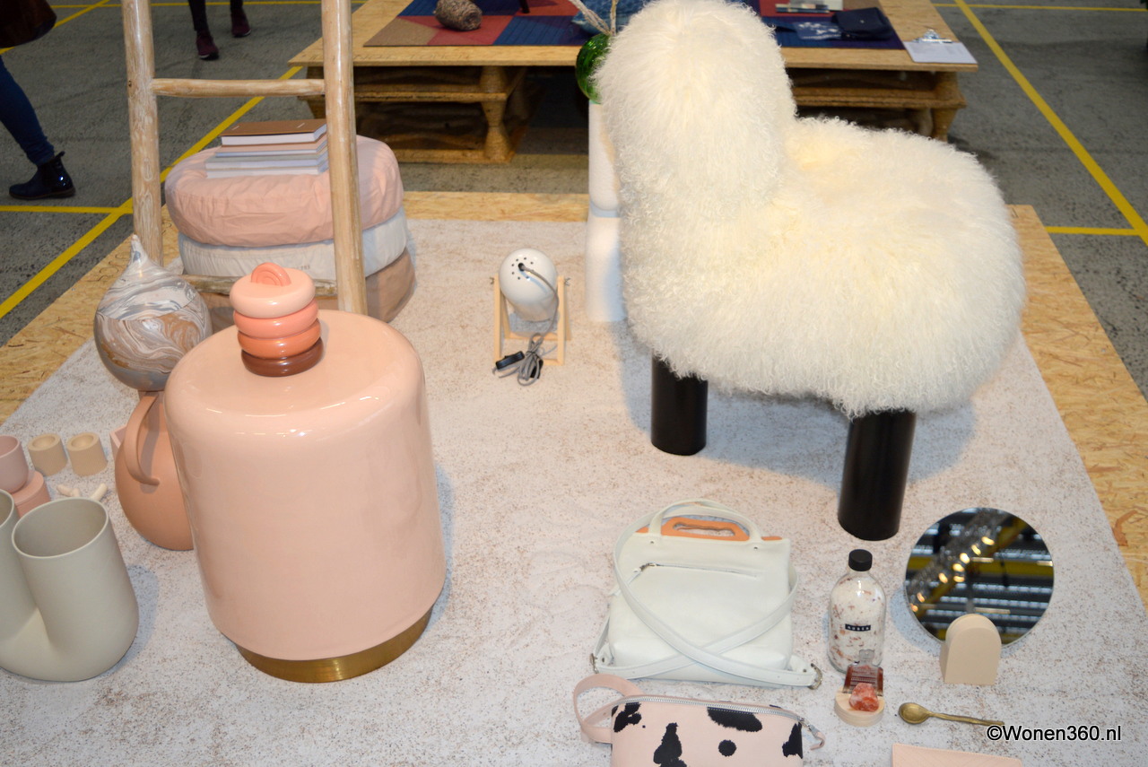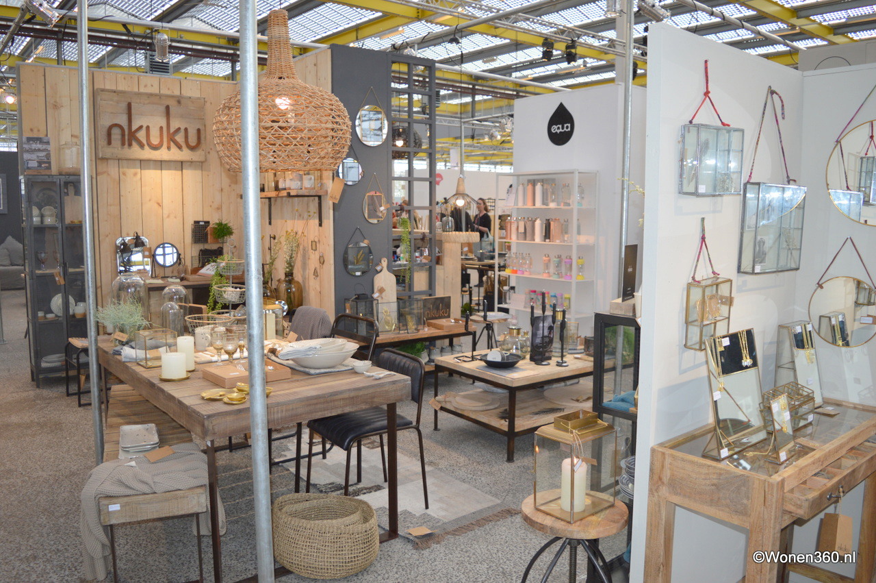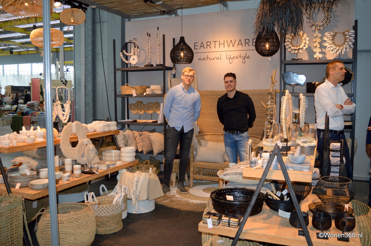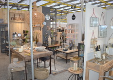 Veel natuurtinten in de stand van Nkuku, de producten worden van duurzame materialen gemaakt in samenwerking met ambachtslieden over de hele wereld.