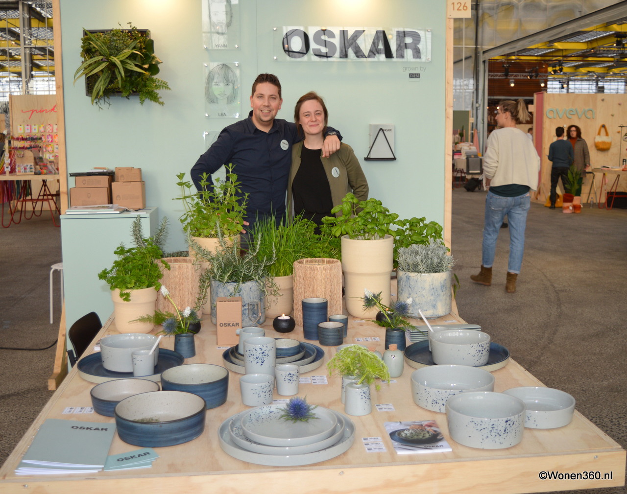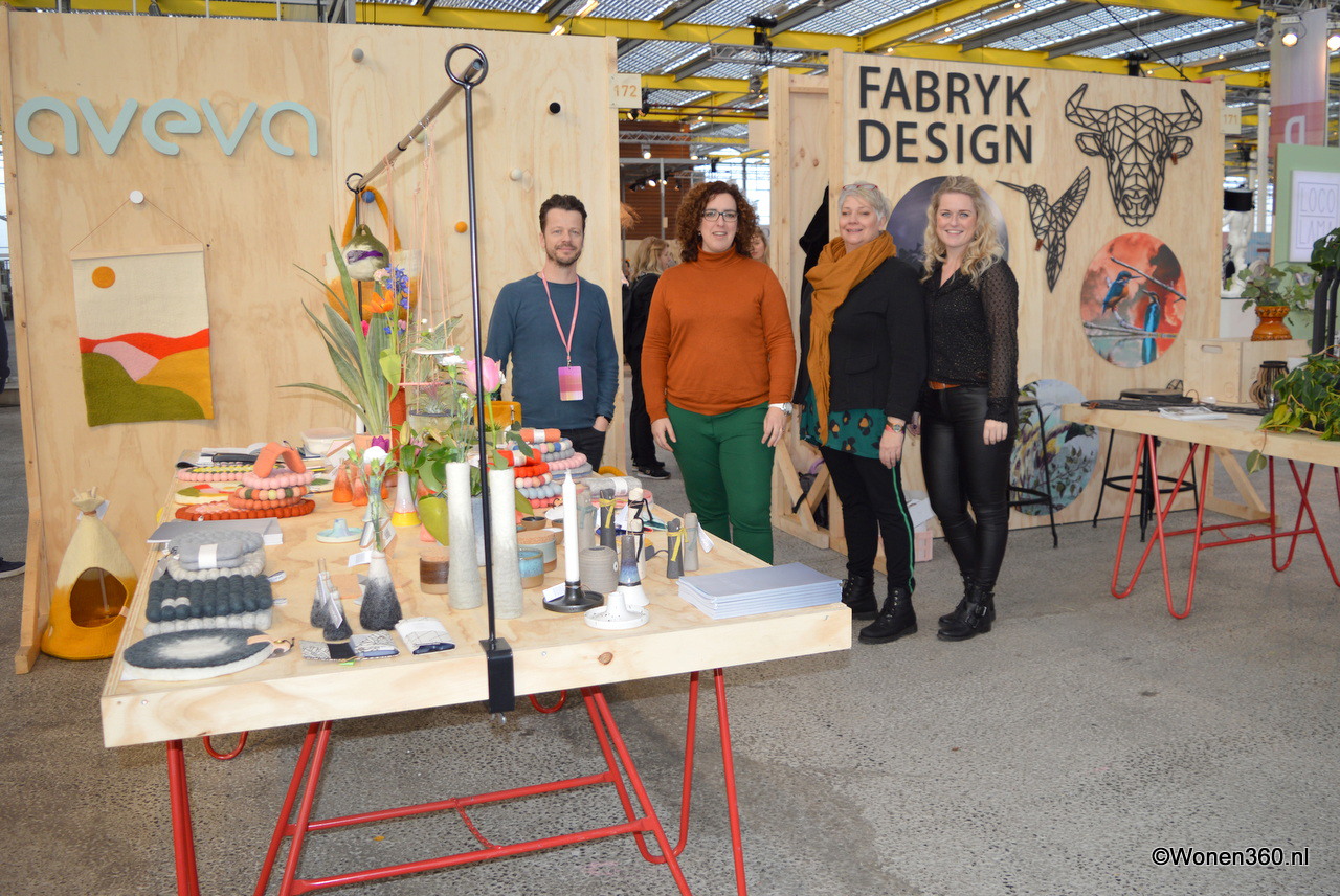Christoph Jeckelmann, Indra Stas, Lutina Eisen en Patricia Wolters bemanden de stands van Aveva en Fabryk Design. De producten van Aveva zijn 100% natuurlijk gemaakt met als voornaamste materialen vilt en keramiek. Fabryk ontwerp en maakt woonaccessoires en meubelen. Puur en stoer met een snufje geometrisch design.
