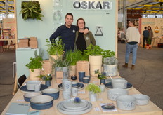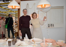 Sander Berkhof en Leen Depauw in de stand van Oskar, een kersvers Belgisch merk van serviezen en andere tafelaccessoires dat ze hebben gecreëerd met jongvolwassen in het achterhoofd.