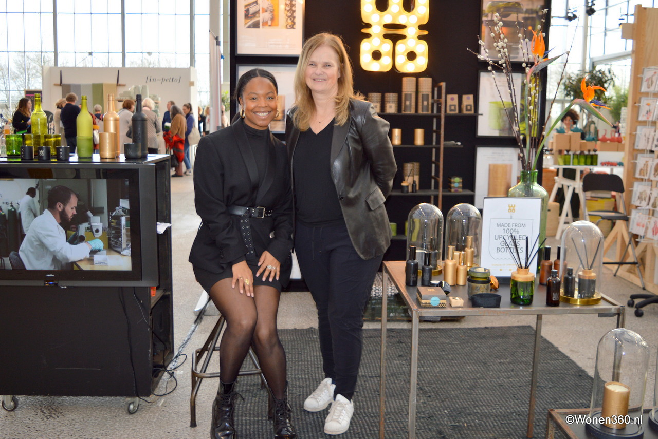 Kimberley en Renée in de stand van Woo (Worlds of Opportunities), de collectie bestaat uit lifestyle producten die handgemaakt van ge-upcyclede en natuurlijke materialen zijn. Variërend van geurkaarsen en diffusers, persoonlijke verzorging tot accessoires.