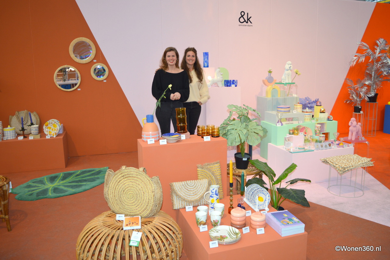 Elyse van Casteren en Madelon van den Berg in de stand vol kleurrijke, nieuwe collectie van &Klevering.