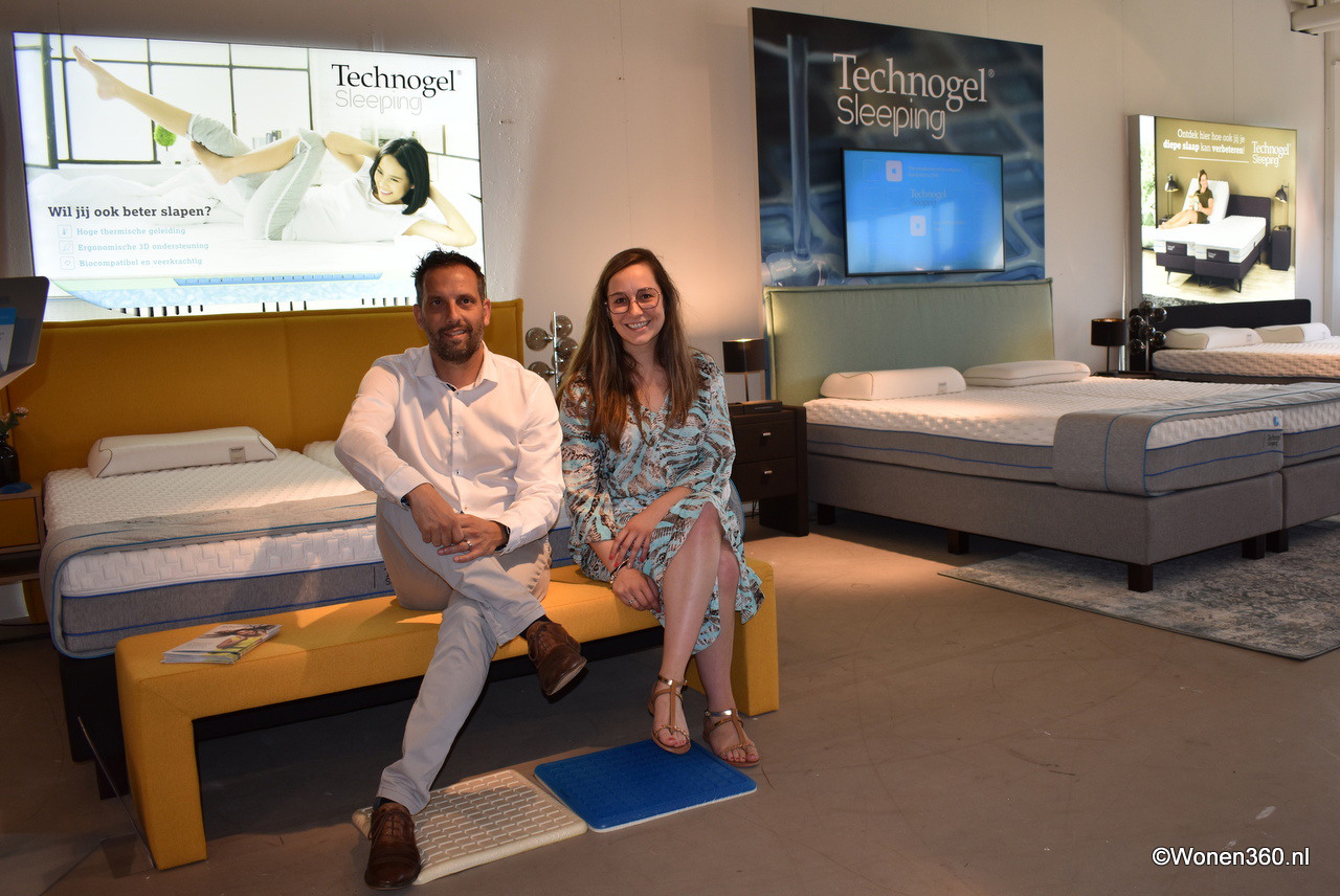 Jürgen Swinnen en Tita Dupont van Technogel, dat naast de complete collectie matrassen en kussens, ook matrassen in een nieuwe complete boxspringset showde.