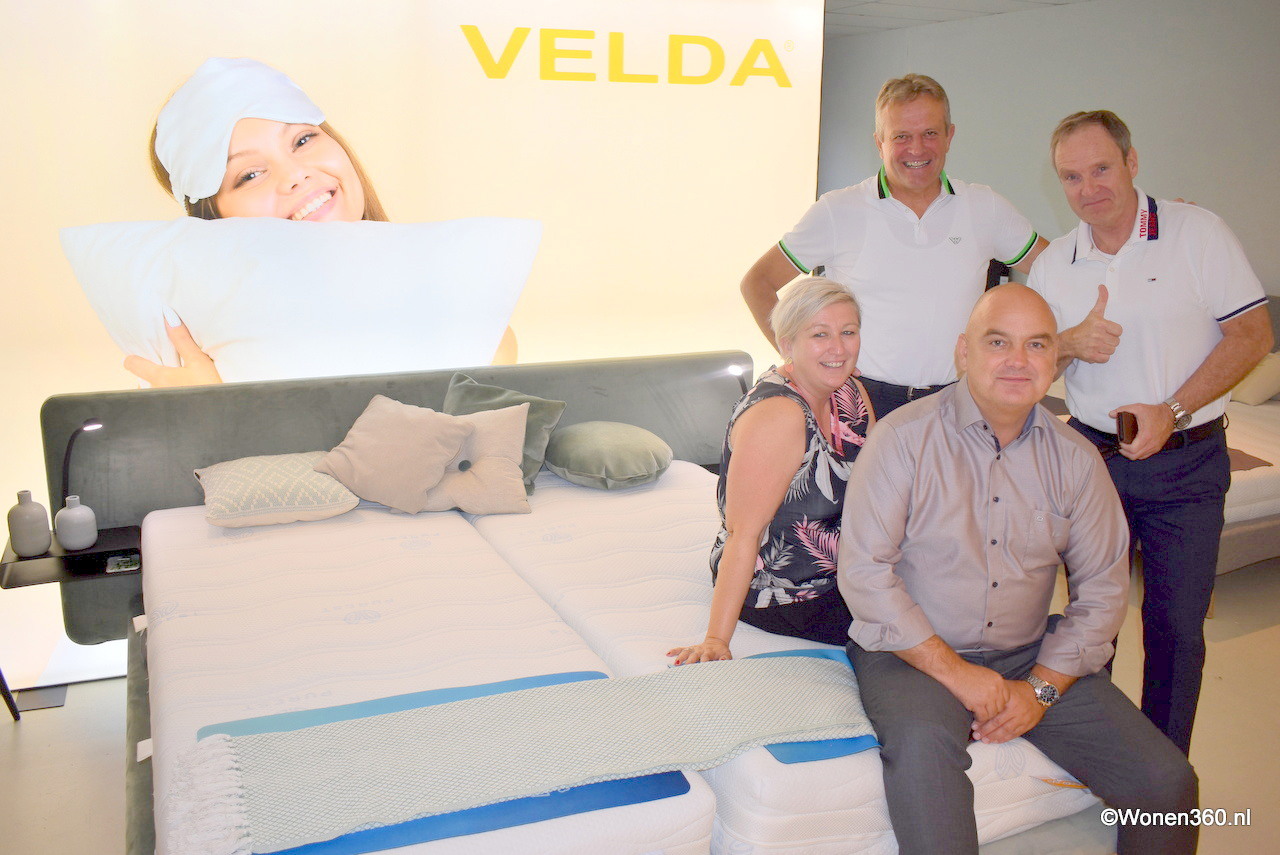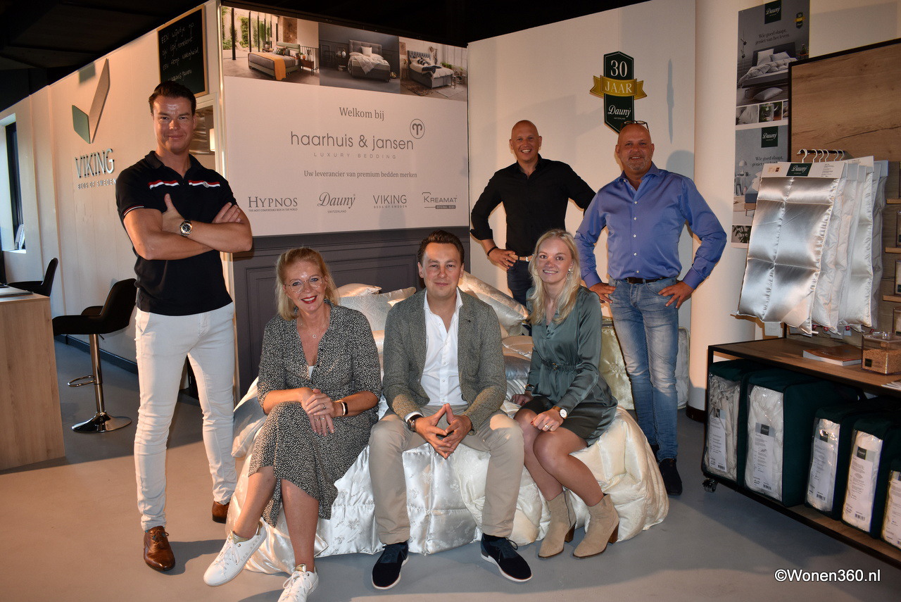 Haarhuis & Jansen, het beddenbedrijf van Jeroen Haarhuis en Cees Jansen (beiden rechts), was op het slaapevent met vier merken present, te weten Viking, Hypnos, Dauny en Kreamat (van Olivier Biesmans, op de foto in het midden).