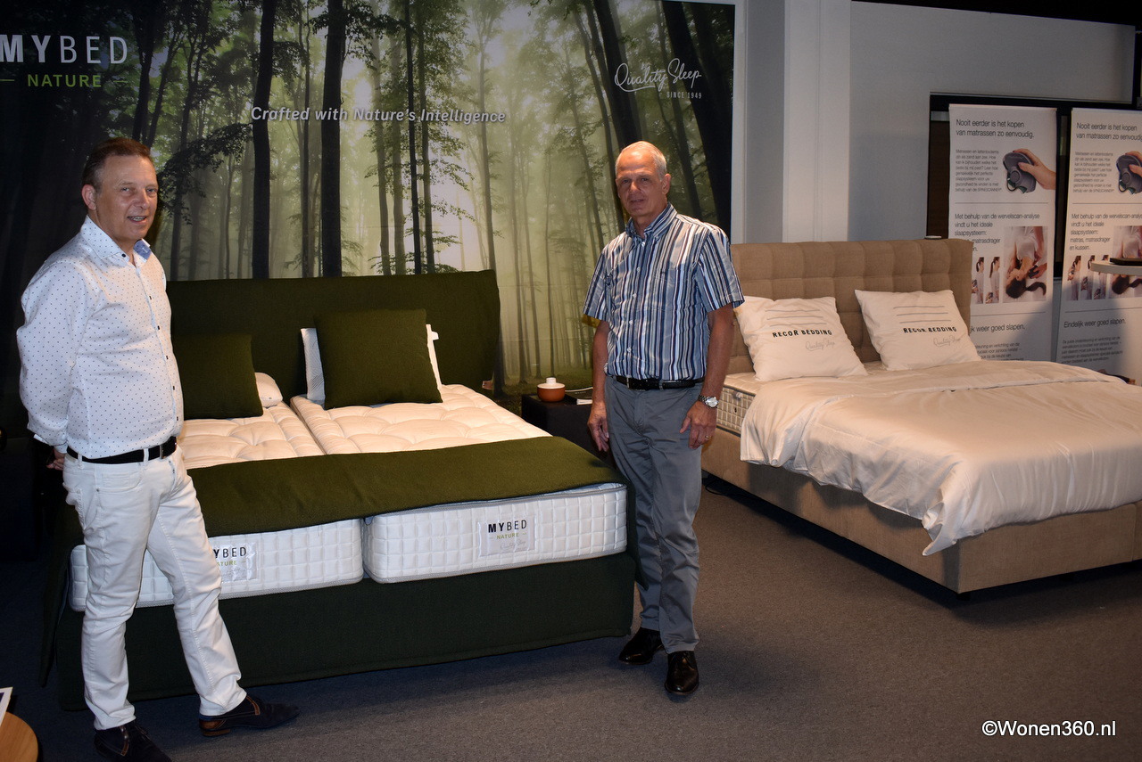 Roel Baltussen en Barry van Dongen van Recor Bedding. De nieuwe collectie staat voor eerlijkheid, overzichtelijkheid en eenvoud. Zo is er nu keuze uit vier bedden met dezelfde prijs, waardoor er geen keuzestress meer is.