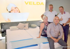 V.l.n.r. Inge van der Kerken, Peter Van Rompuy, Ben Spork (vooraan) en Peter Ticheloven van Velda, dat met vel_you (Vel You) het eerste circulaire bedsysteem toonde.