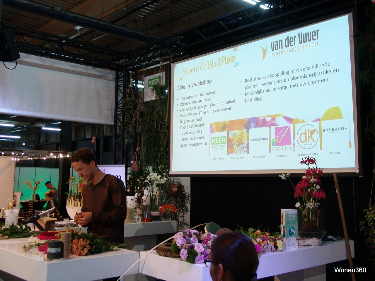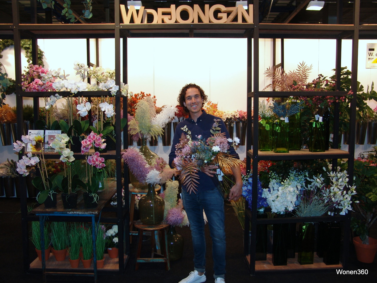 De stand van webgroothandel W. de Jong & Zn stond bomvol met allerlei kleurige kunstzijde bloemen en –planten.