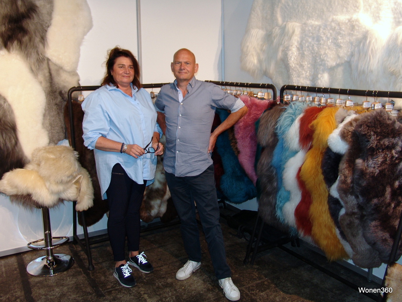 Ilona en haar man Nico Pessers voor de kleurrijke huiden en vachten die zij aanbieden. Het bedrijf uit Kaatsheuvel levert meubelleder aan de projectwereld, meubelindustrie en scheepsstoffeerders.