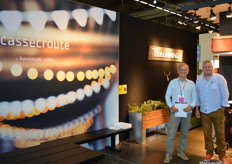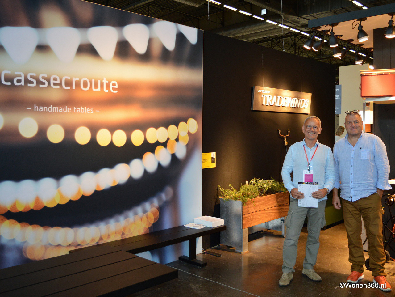 Jean-Pierre Galeyn en Ronald Mattelé van Tradewinds. De nieuwe handgemaakte picnic tafels, voor consumenten, werden geïntroduceerd.