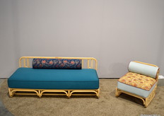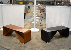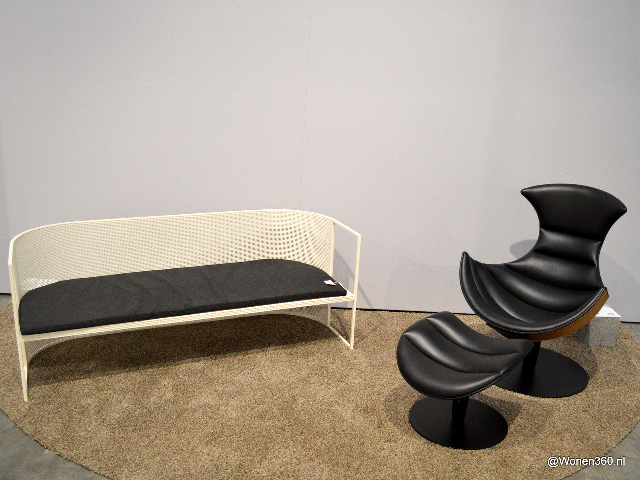 De Bauhaus Lounge Bench van Kristina Dam Studio deelde het karpet samen met de Lobster Chair van Bruunmunch Furniture.