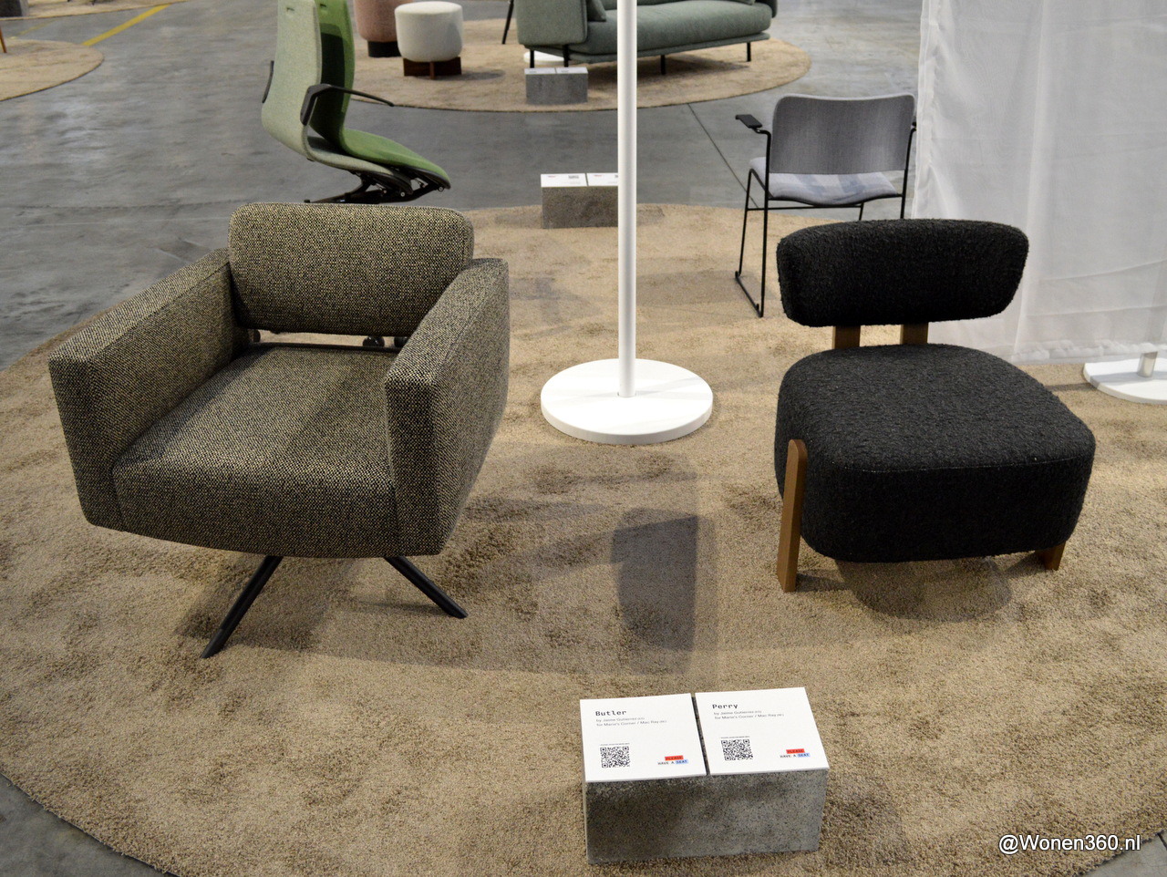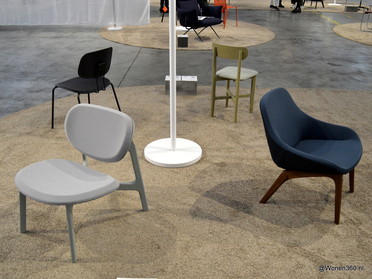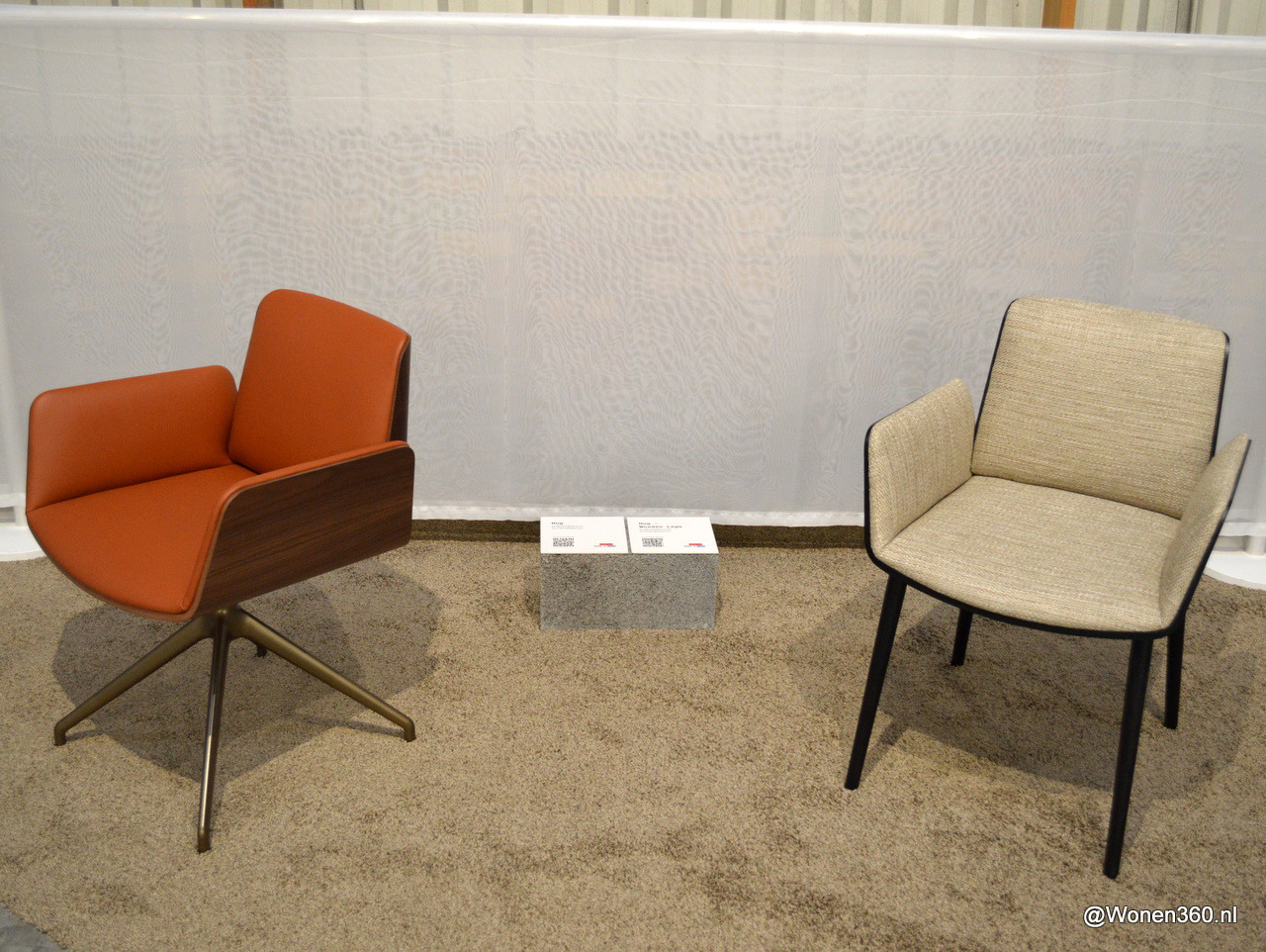 Rechts Savo 360 door Olle Lundberg voor Savo Commercial Seating en de Founded Lounge Chair door Richard Schipper voor Qliv.