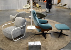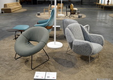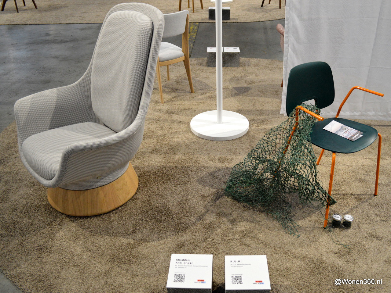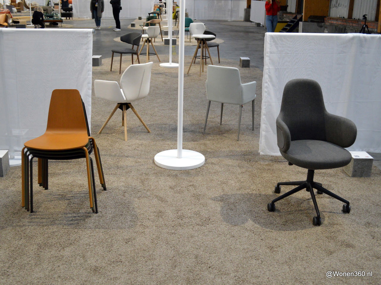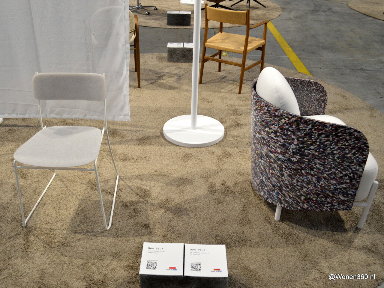 Rechts Savo 360 door Olle Lundberg voor Savo Commercial Seating en de Founded Lounge Chair door Richard Schipper voor Qliv.
