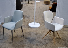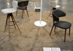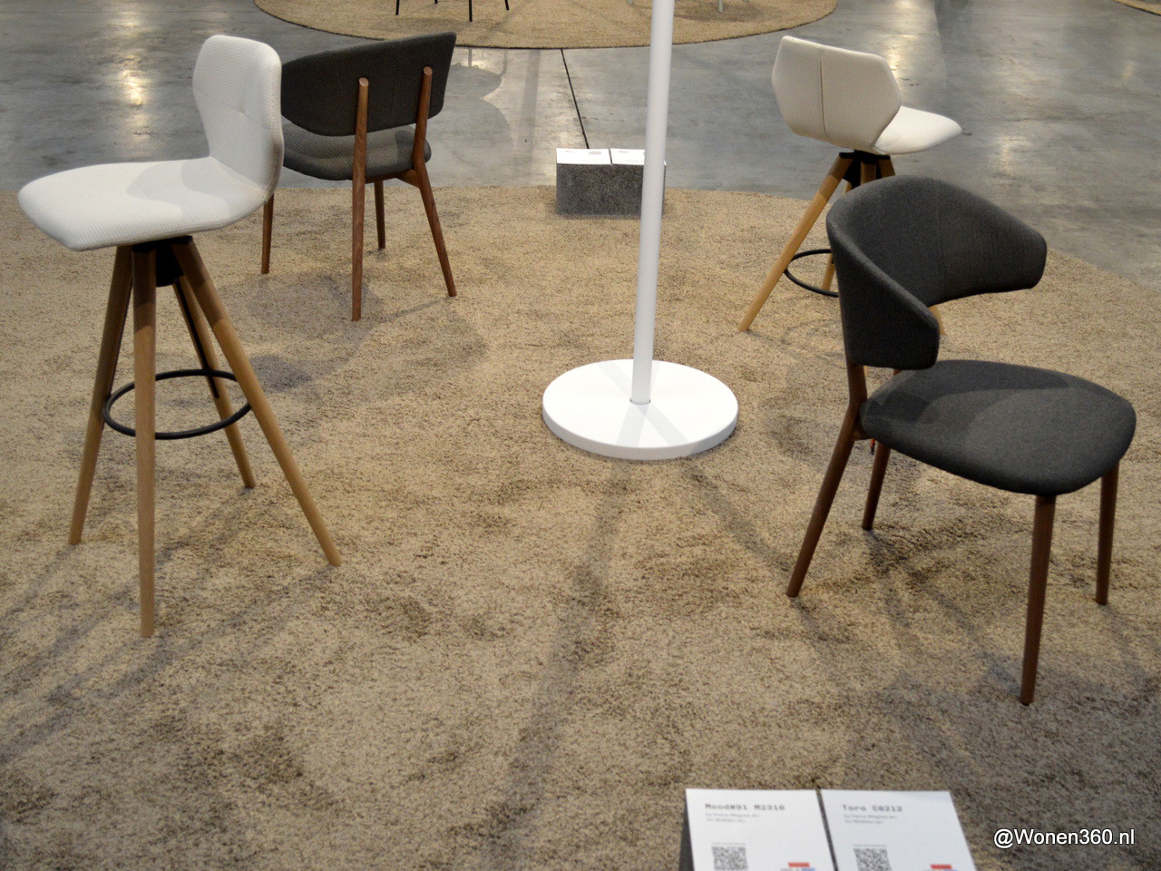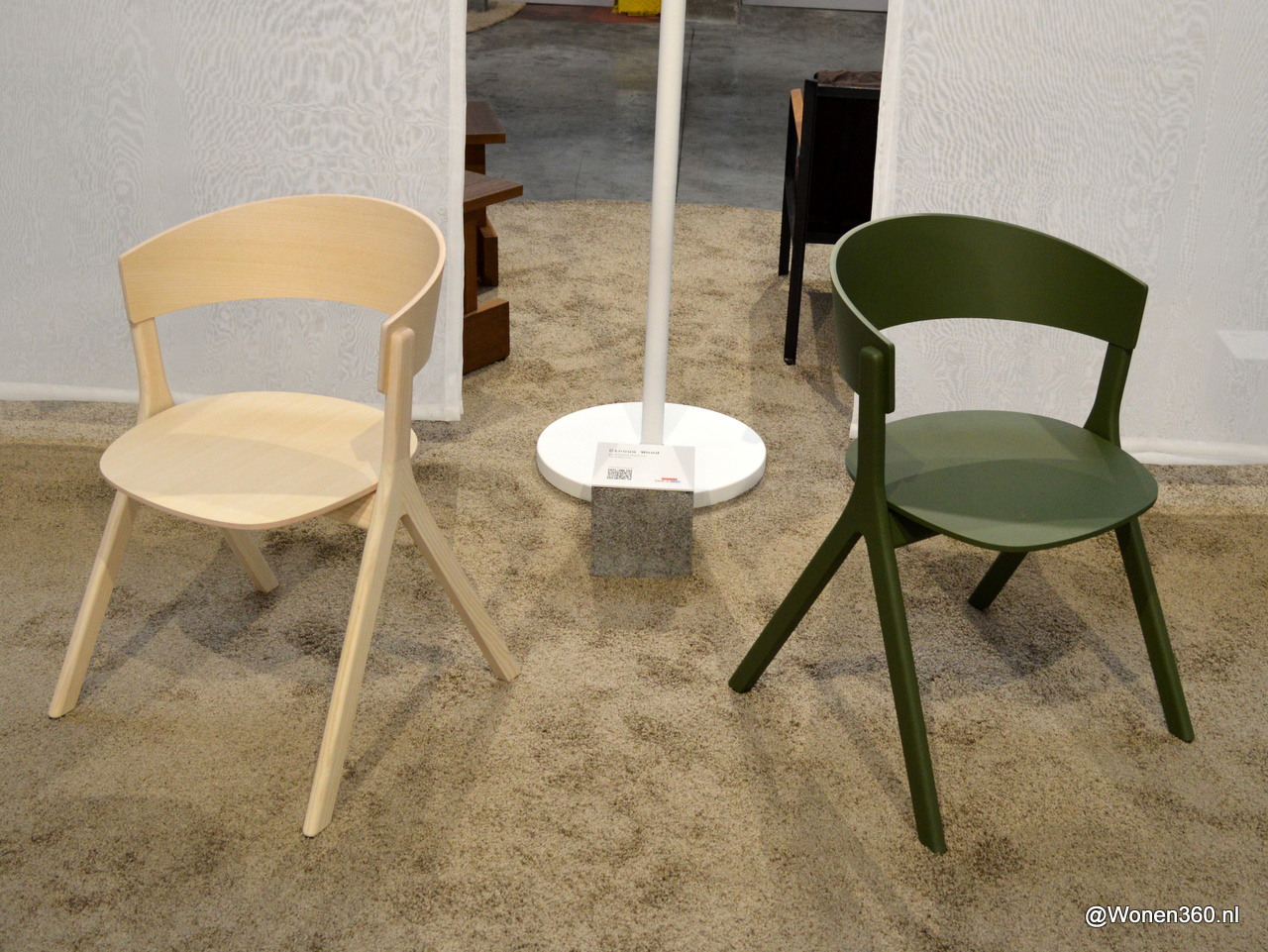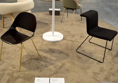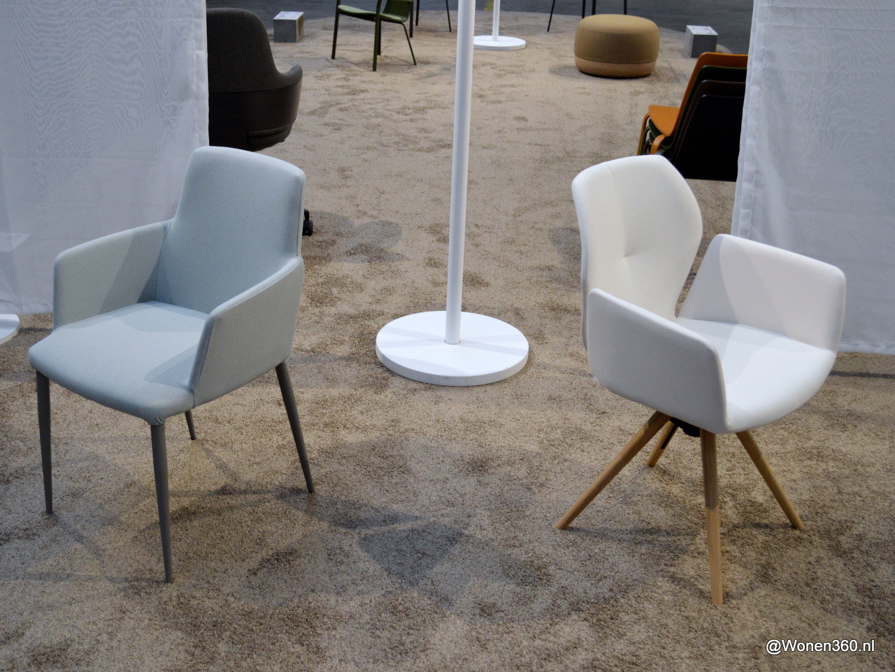 Twee varianten op model Hug van Punt Mobles, een met houten poot en een met stalen onderstel.