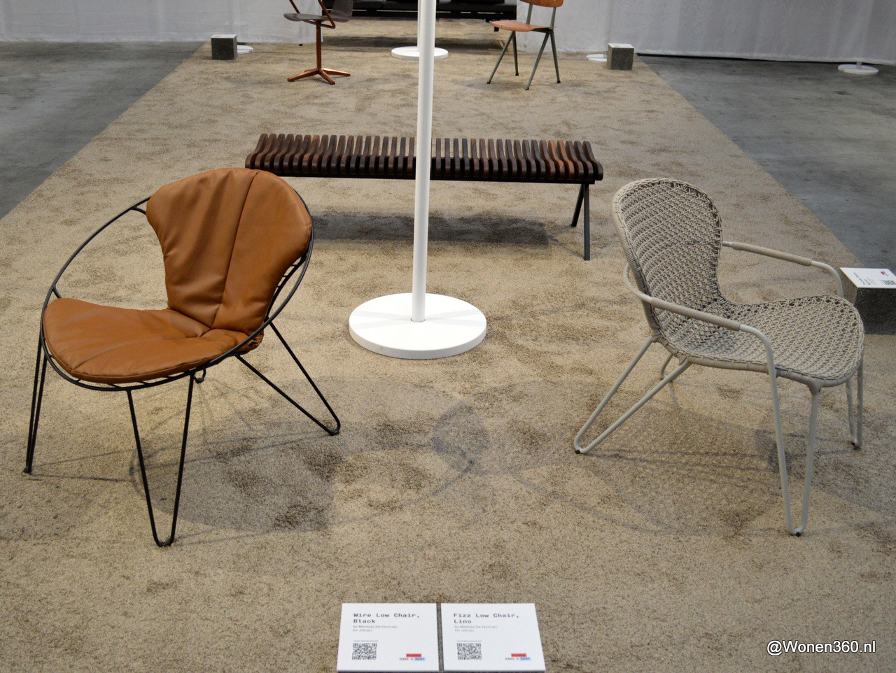 Twee modellen van Joli, Wire Low Chair en de Fizz Low Chair.