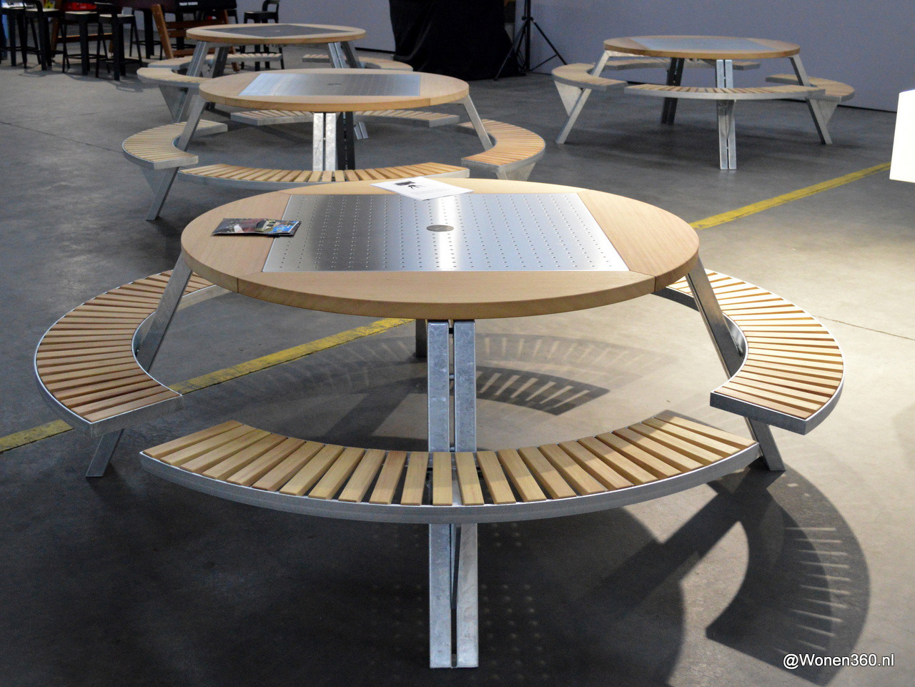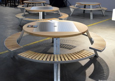 In de horecahoek van de tentoonstelling kunnen bezoekers plaatsnemen op picknicktafels van Extremis.