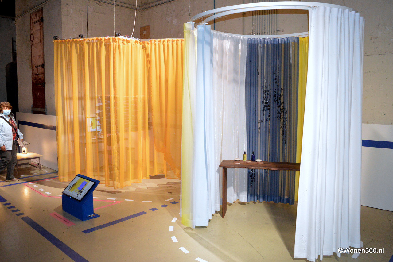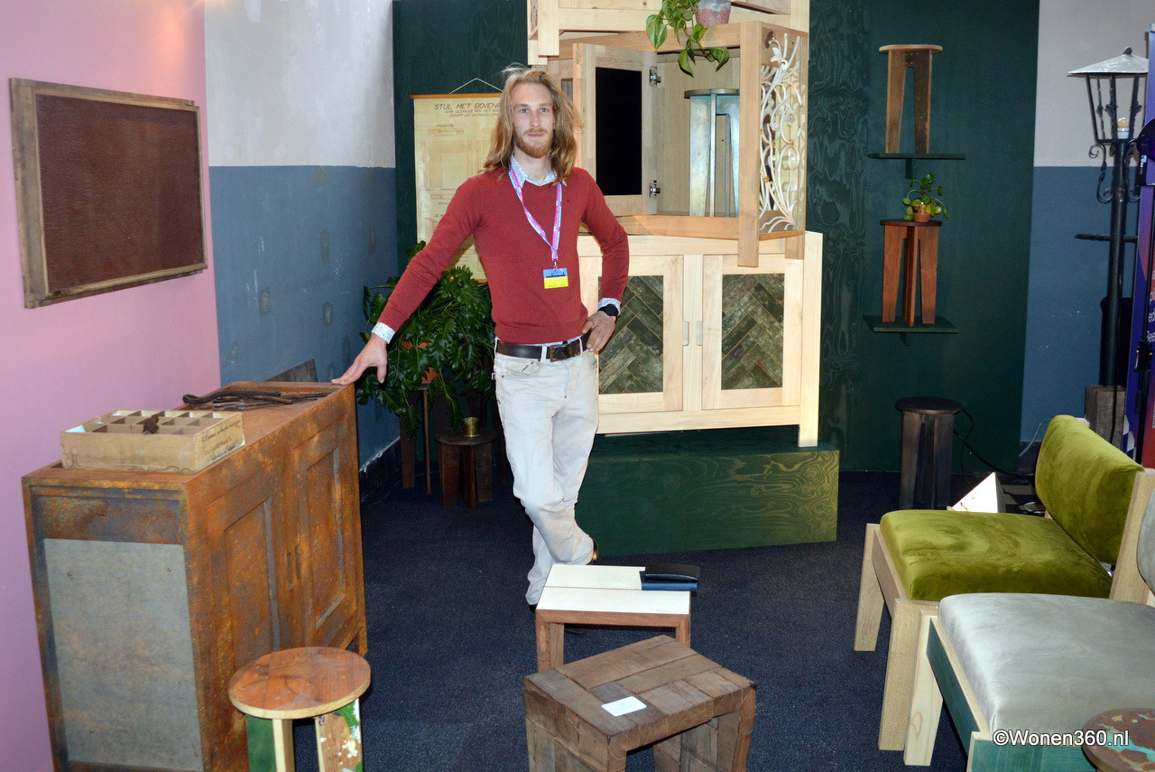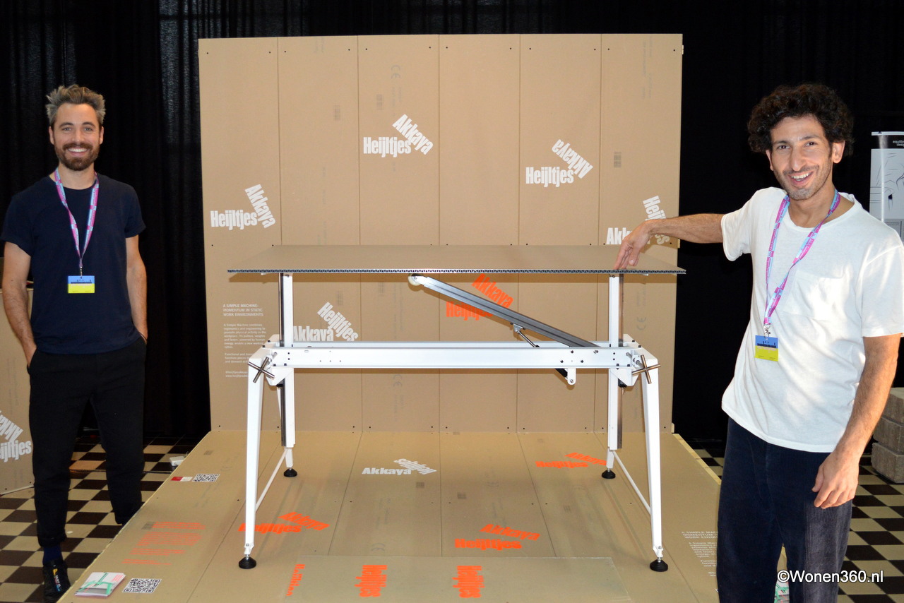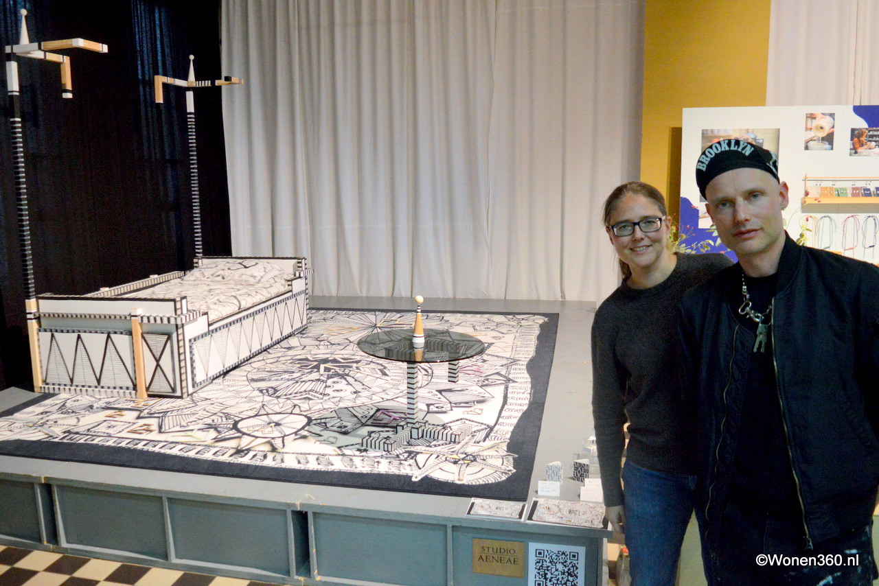 Erna en haar broer Victor de Bie 'slaan hun veren uit' tijdens het designevent en presenteren trots het zelf ontworpen bed en vloerkleed.