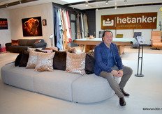 Commercieel directeur Jeffrey Koster van Meubelindustrie Het Anker op elementenbank Wilson, die van twee kanten is te gebruiken. Ideaal voor de projectmarkt, voor in een tuinkamer bijvoorbeeld.